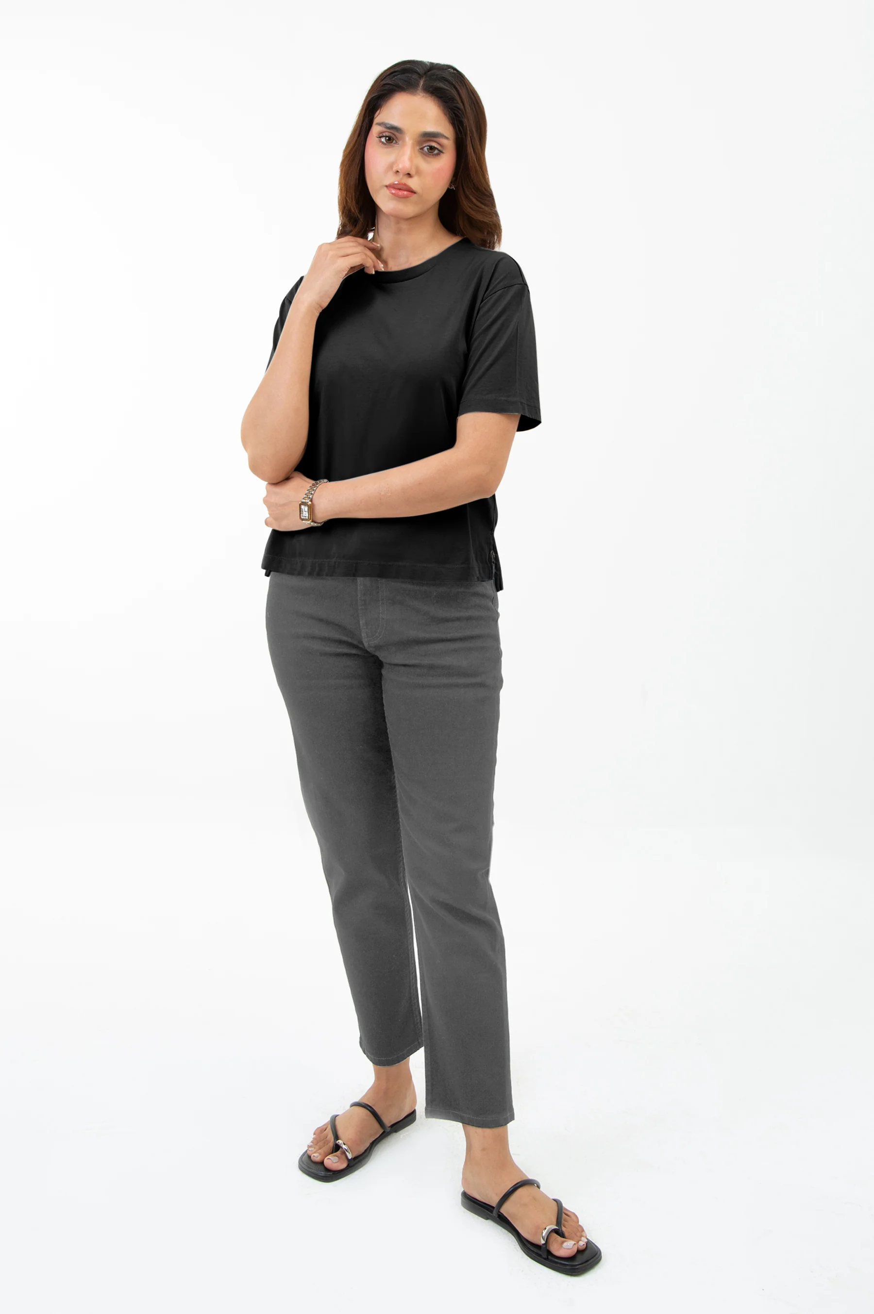 Cropped Boxy Tee with Drop Shoulder
